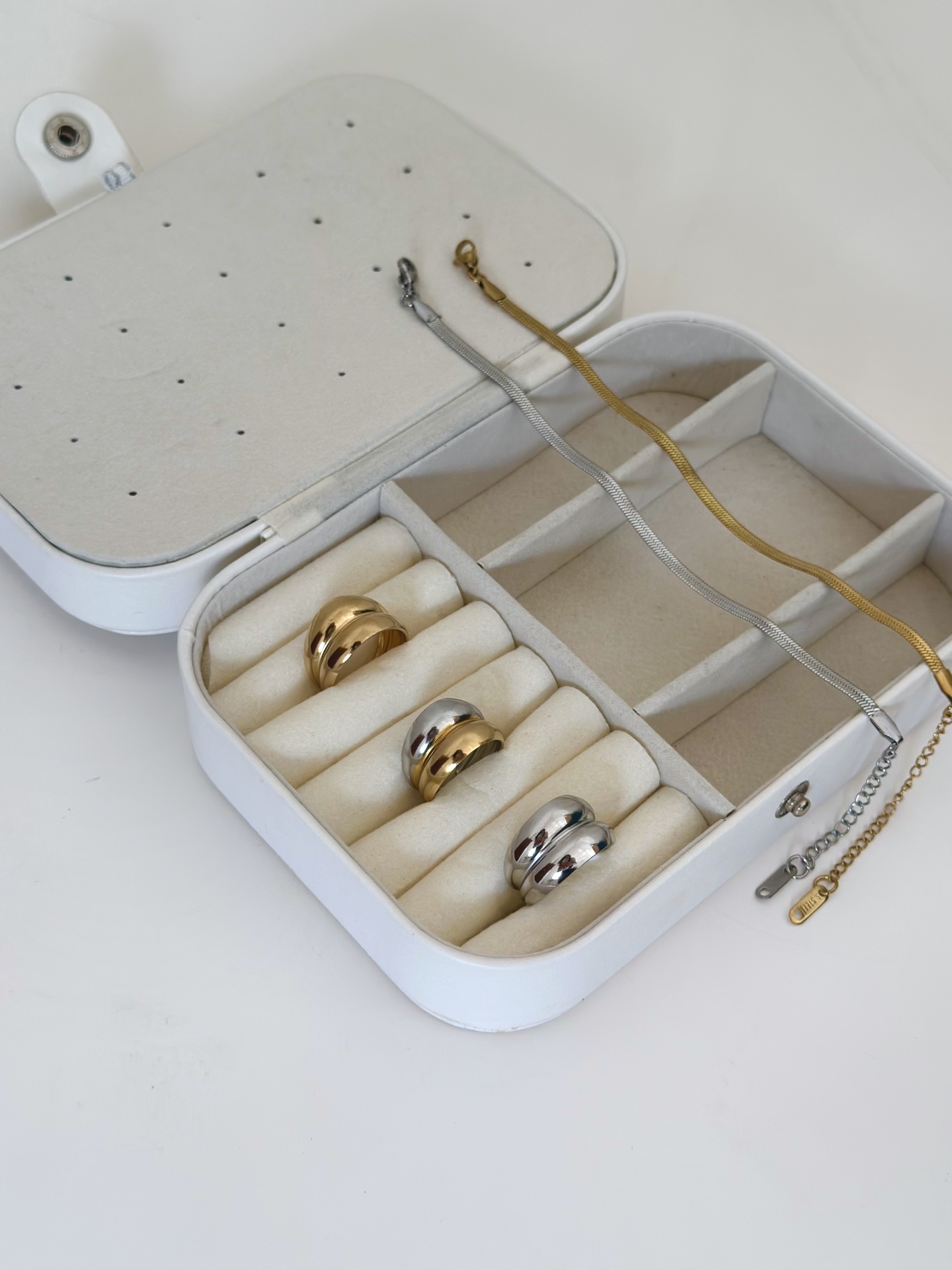 Chloe Ring 14,00 € Desconto de %. Partilhar cor dourado prateado misto Comprar Contactar Made for everyday wear — water-resistant, durable, and designed to stay beautiful. 18k gold plated (gold pieces) Stainless steel Tarnish-resistant Shower-friendly