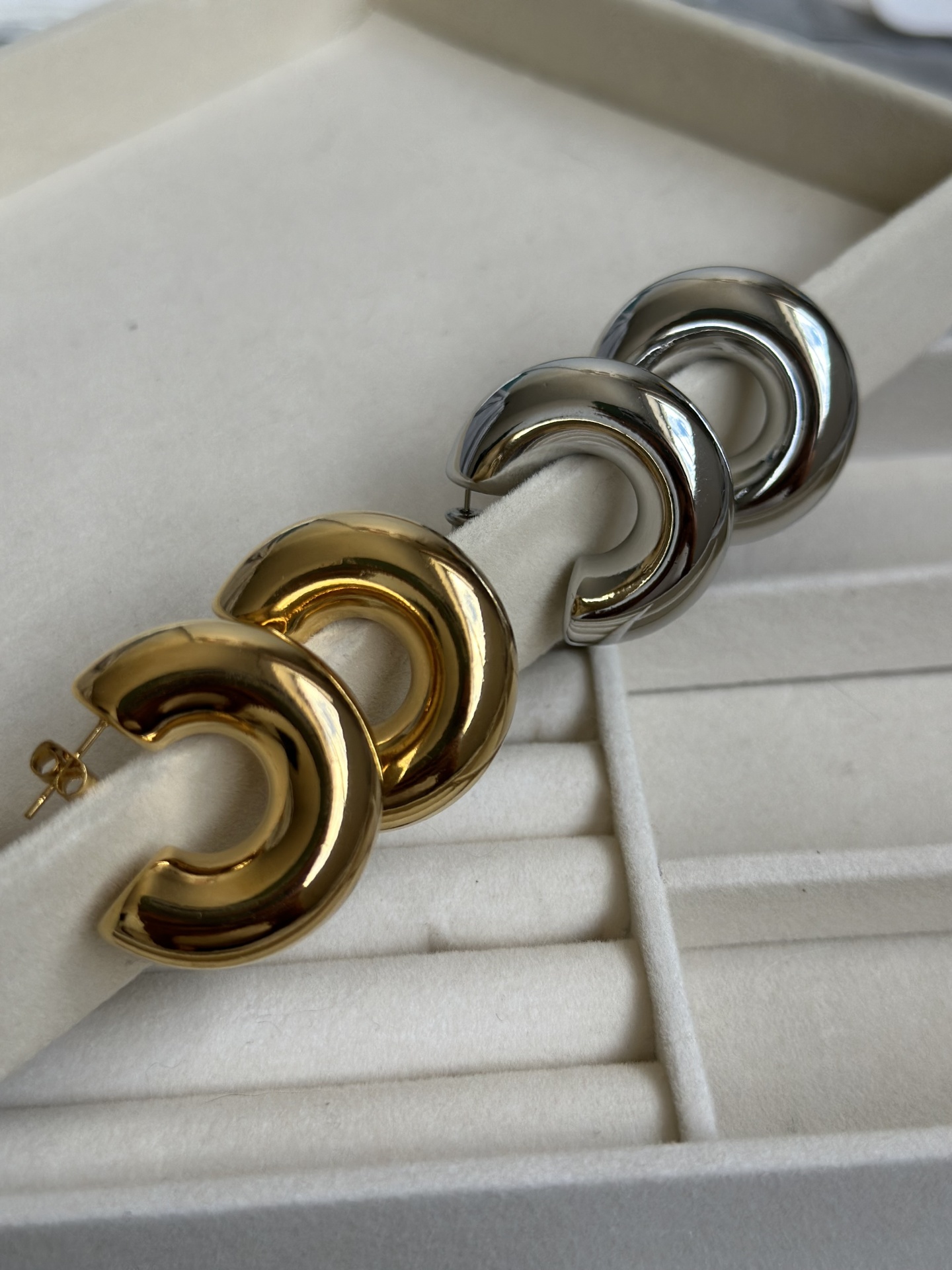Bia Earrings 16,00 € Desconto de %. Partilhar cor dourado prateado Comprar Contactar Made for everyday wear — water-resistant, durable, and designed to stay beautiful. 18k gold plated (gold pieces) Stainless steel Tarnish-resistant Shower-friendly