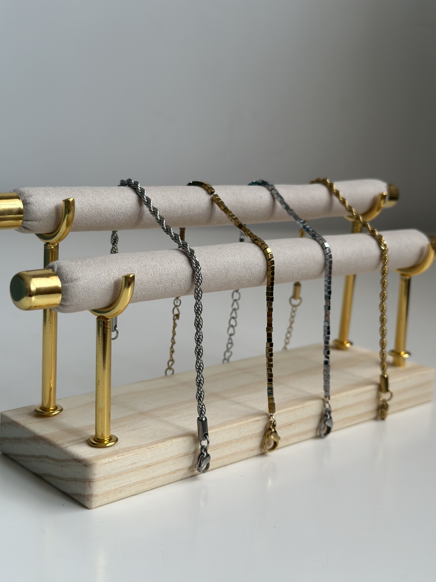 Emma Bracelet 11,00 € Desconto de %. Partilhar cor dourado prateado Comprar Contactar Made for everyday wear — water-resistant, durable, and designed to stay beautiful. 18k gold plated (gold pieces) Stainless steel Tarnish-resistant Shower-friendly